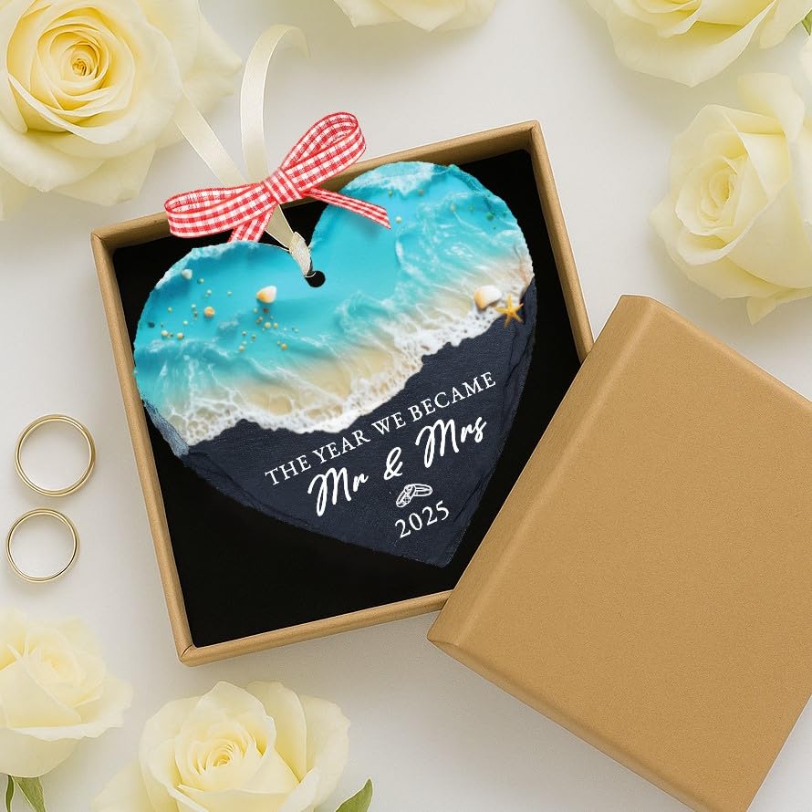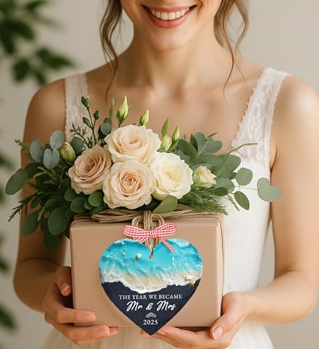 First Christmas Married Ornament 2025, Wedding Gifts for Couples, The Year We Became Mr and Mrs, Newlywed Just Married 1st Xmas Gift for Bridal Shower, Stone Ornament HOT25
