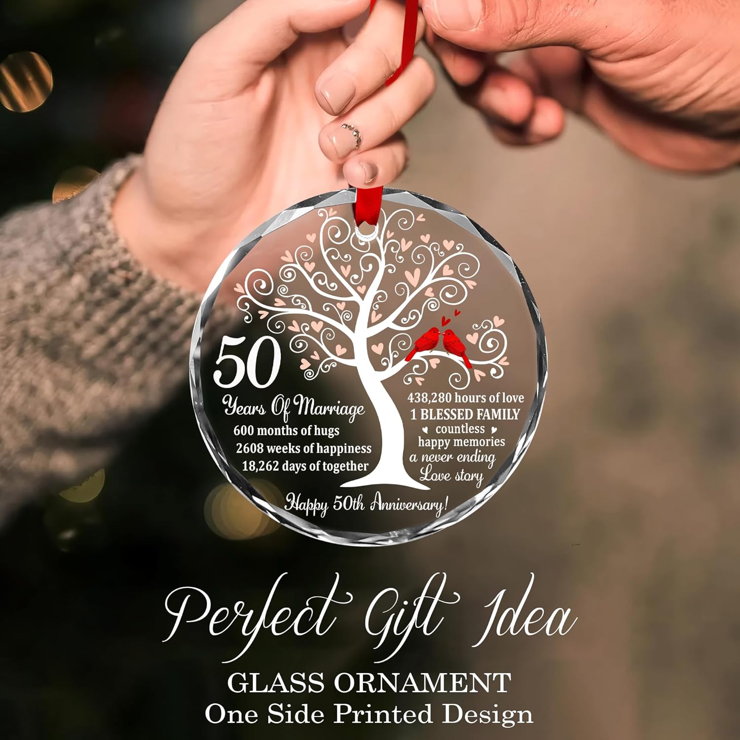 Golden Couple Glass Ornament - 50th Wedding & - Unique Glass Ornament for Couple and Parents