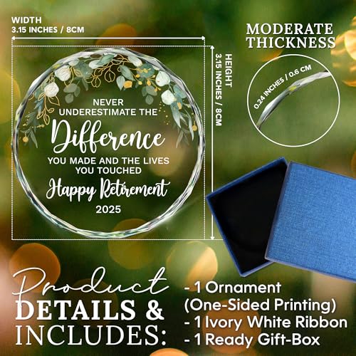 HEXMOZ Retirement Gifts - Retirement Gifts for Women, Men 2025 - Retired Ornament 2025 - Retired Gift for Coworker, Boss, Employee, Teacher, Nurse, Woman, Man - Glass Christmas Ornament Keepsake