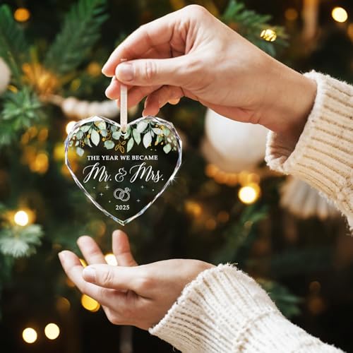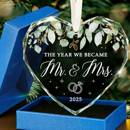 HEXMOZ Wedding Gifts for Couples 2025 - Mr and Mrs Gifts - Wedding Gift Ideas for Newly Wed Couple, Bride, Bridal Shower, Future Mr & Mrs - Just Married Glass Ornament 2025, 1st Married Decorations