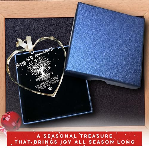 Gifts for 60th Anniversary - 60th Wedding Anniversary Ornament - 60 Wedding Anniversaries Ideas, Anniversay Married Gifts - 60 Married Gift for Grandparents, Parents, Couple - Glass Ornament