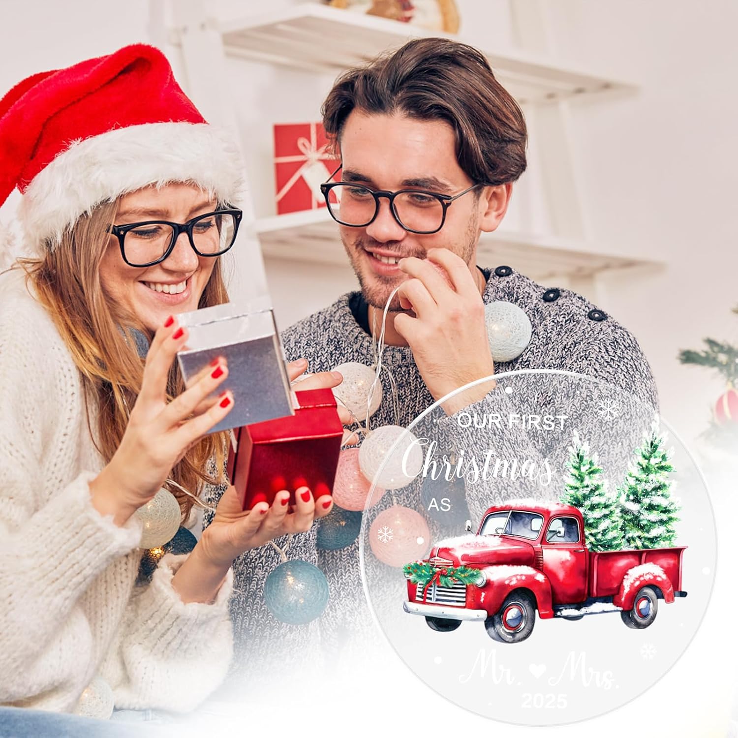 First Christmas Married Ornament 2025,Mr and Mrs Ornament 2025, Acrylic Hanging Decor for Couple Wedding Gifts Bridal Bridal Shower Gifts Just Married Ornaments 1st Xmas Newlyweds Presents