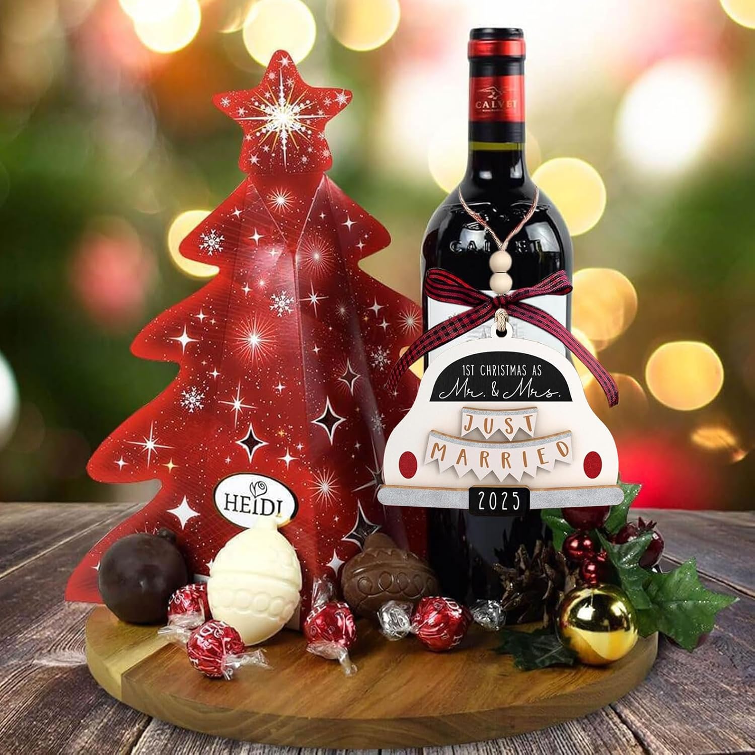 Mr & Mrs Wooden Christmas Ornament 2025 - First Christmas Married Ornament - Wedding Gifts for Couples & Bride - Traditional, White, Unscented