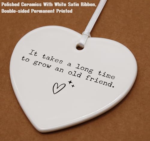 It Takes A Long Time to Grow an Old Friend-Friendship Gifts for Best Friend BFF Bestie,Thank You Presents for Soul Sisters,Friendship Keepsake-Ceramic Heart Shaped Ornament with Gift Box