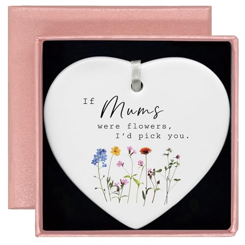If Mums were Flowers, I'd Pick You - Mom & Daughter Son Gift - Ceramic Heart Shaped Ornament for Mum on Mother's Day, Birthday, Christmas & Thanksgiving