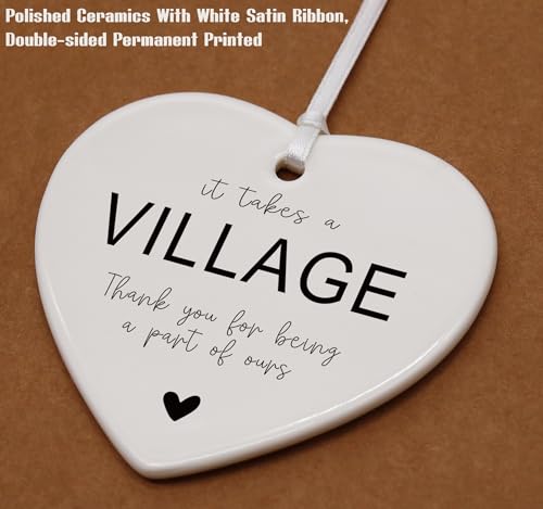 It Takes a Village,Coworkers Employee Bosses Teacher Appreciation Gifts,Thank You for Being a Part of Ours,Child Care Worker,Baby-Sitter Neighbor Gifts-Ceramic Heart Shaped Ornament with Gift Box