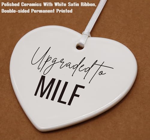 for New Mom-Baby Present Shower for New Mommy-Future Mom-Mama to Be-Pregnancy Present-Birthday Ceramic Heart Shaped Ornament-Upgraded to Milf