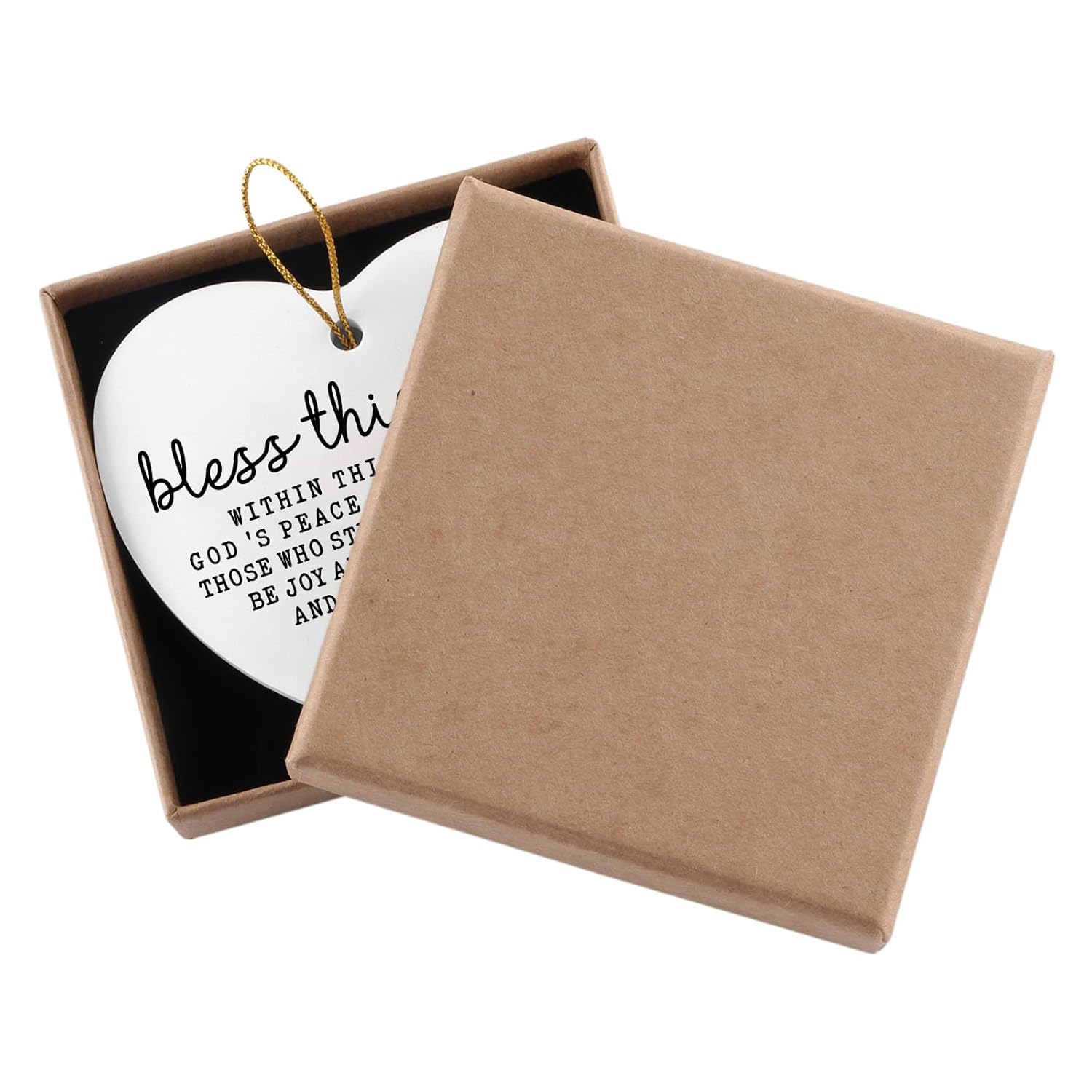 House Warming Gifts New Home God Bless This Home Christian Gifts New Home for Men Women Christmas Ceramic Heart Ornament