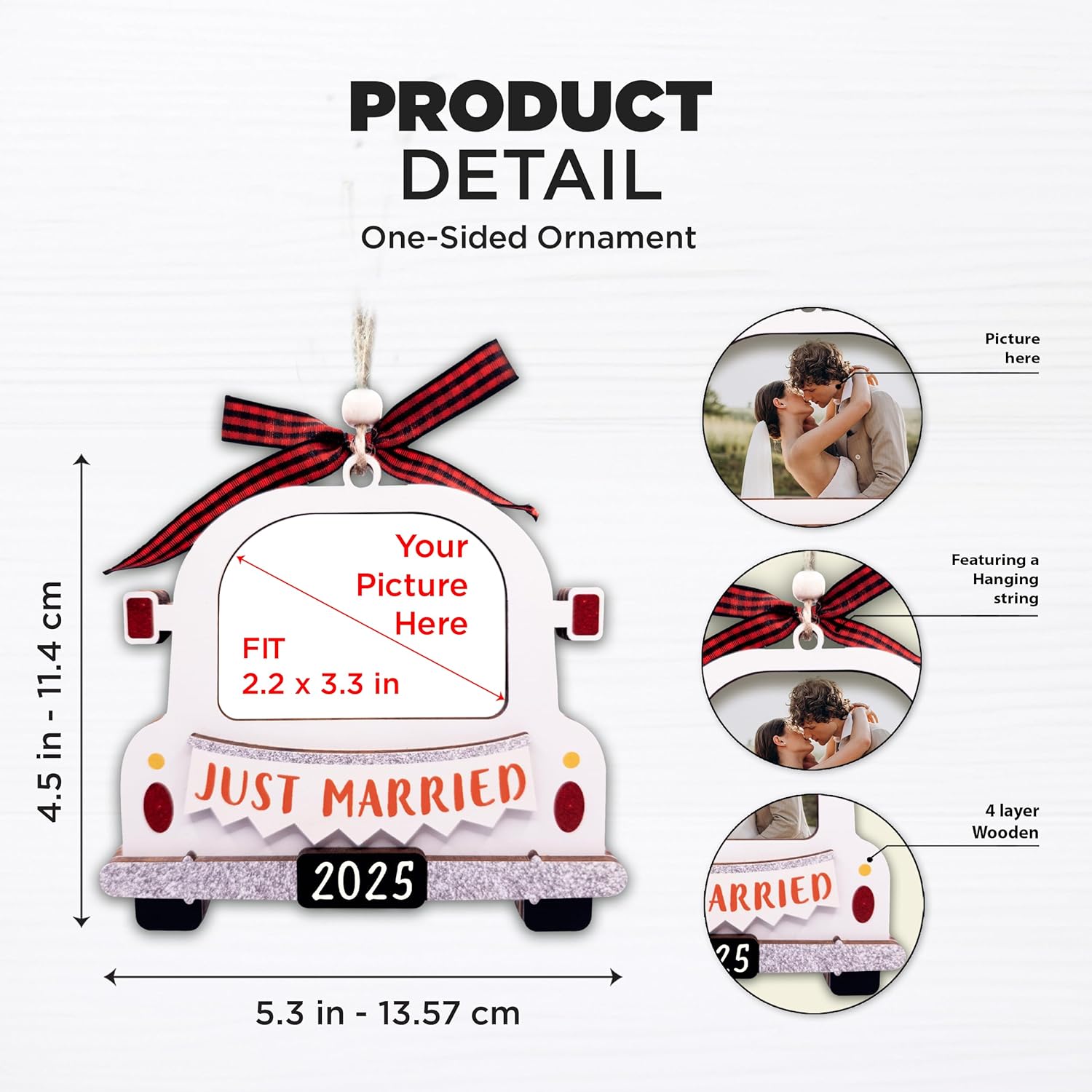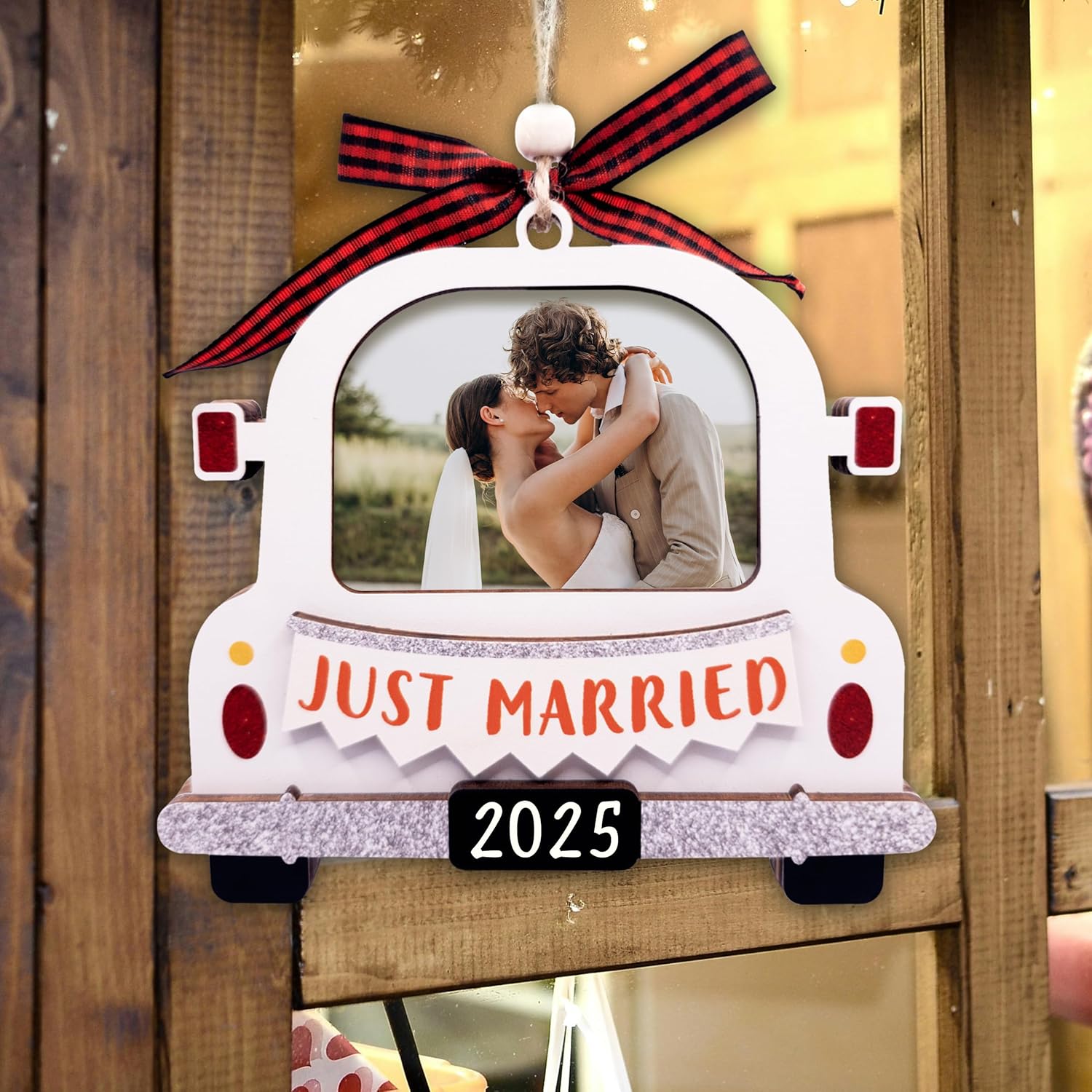 Just Married Ornament 2025 Picture Frame, Large Size - Just Married Frame - Wedding Christmas Ornament 2025 - Mr And Mrs Wedding Gifts For Newlywed Couple - Wedding Shower Gifts, Bridal Shower Gift