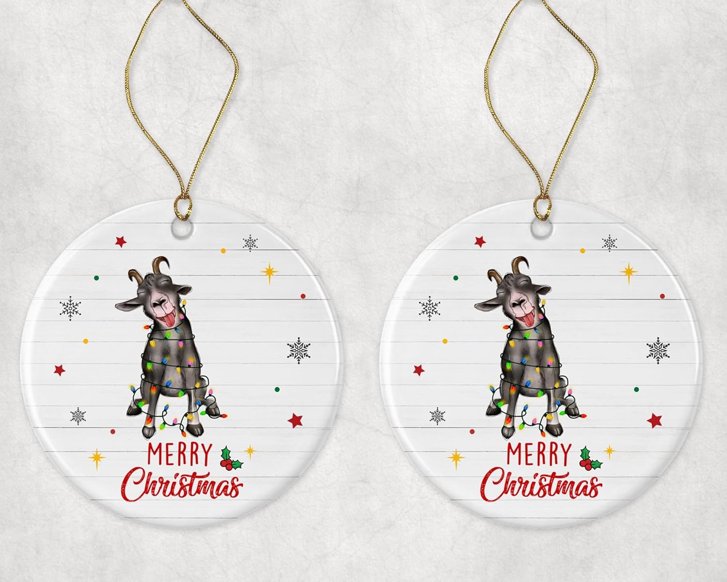 Merry Christmas Goat Ornament, 2024 Christmas Ornament, Goat Christmas Light Ornament, Kids Christmas Ornament, Animal Christmas Ornament Printed on One Side