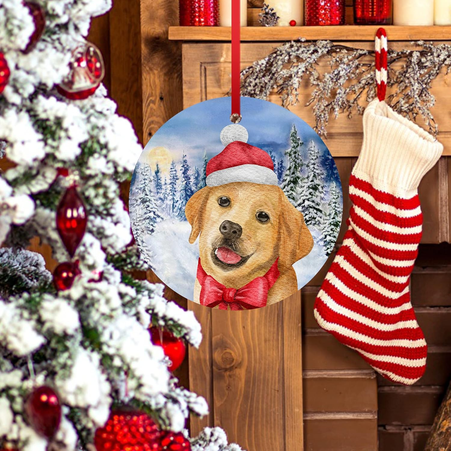 Labrador Retriever Christmas Ornament Dog Ornament for Christmas Tree Decoration Snowflake Winter Xmas Ornament Ceramic Hanging Ornament to Dog Mom Dad Lab Dog Christmas Ornament