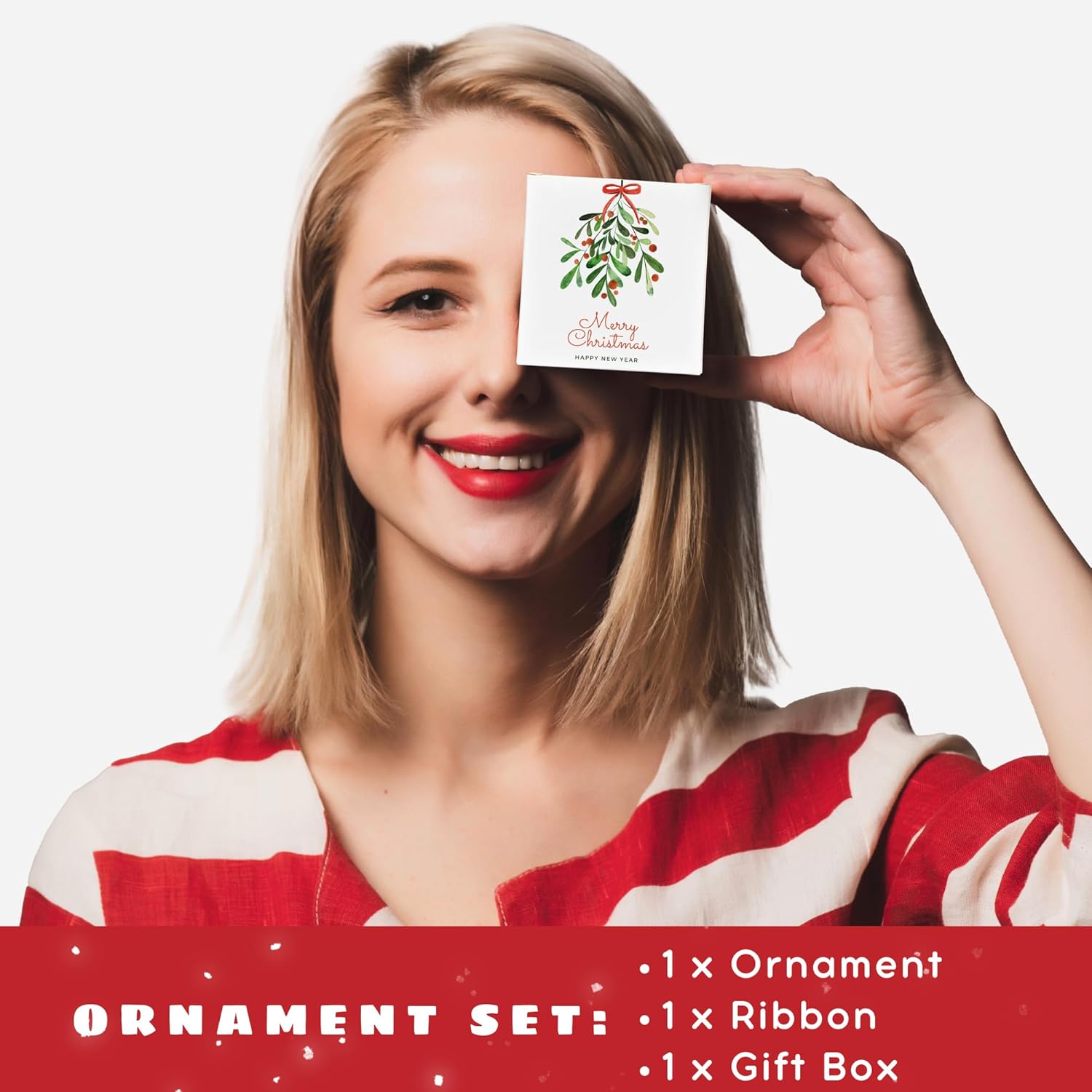 - ORNAMENT SET INCLUDES: You will receive 1x Wood Ornament, 1x Beige Ribbon and 1x Gift Box. The small hole in the ornament is threaded with our shining beige ribbon for easy hanging, which creates an elegant look for your Christmas tree.