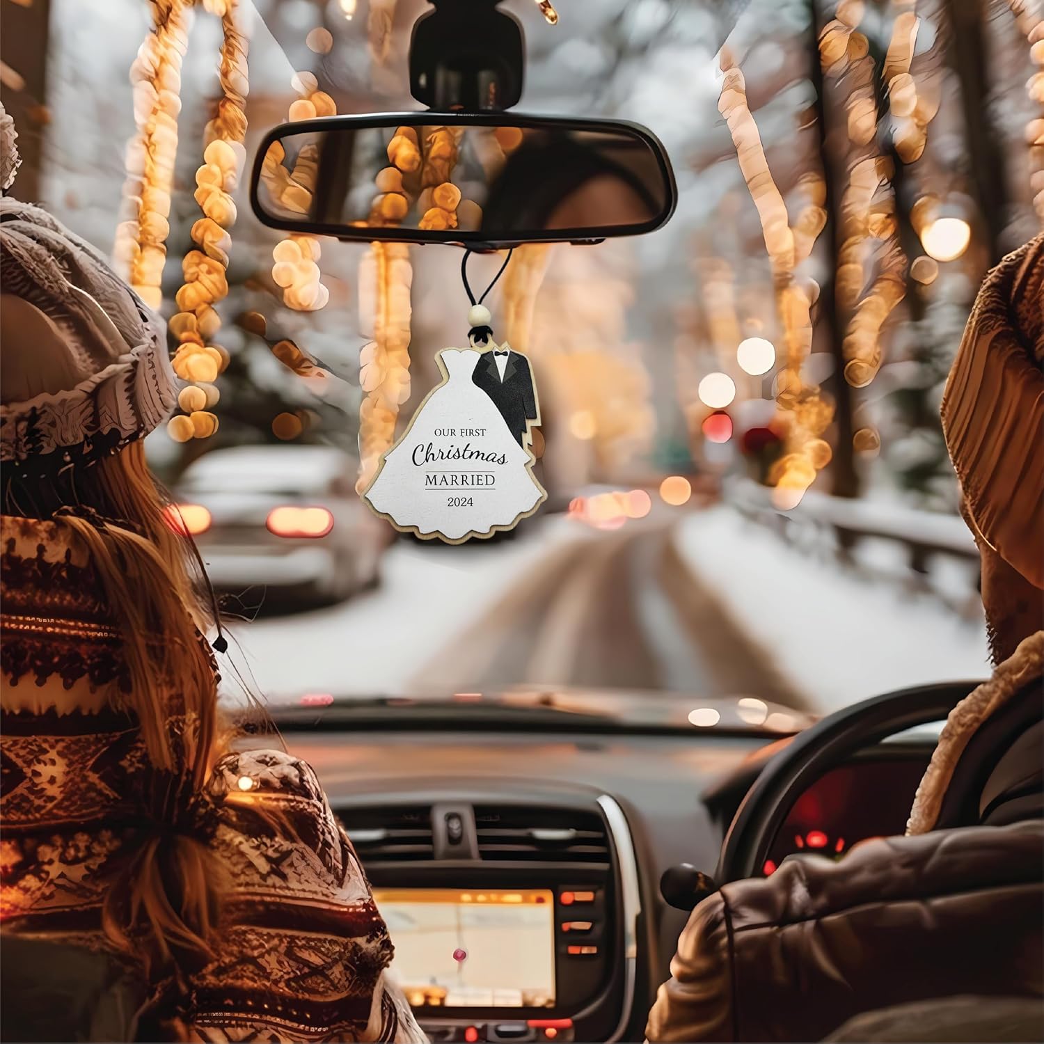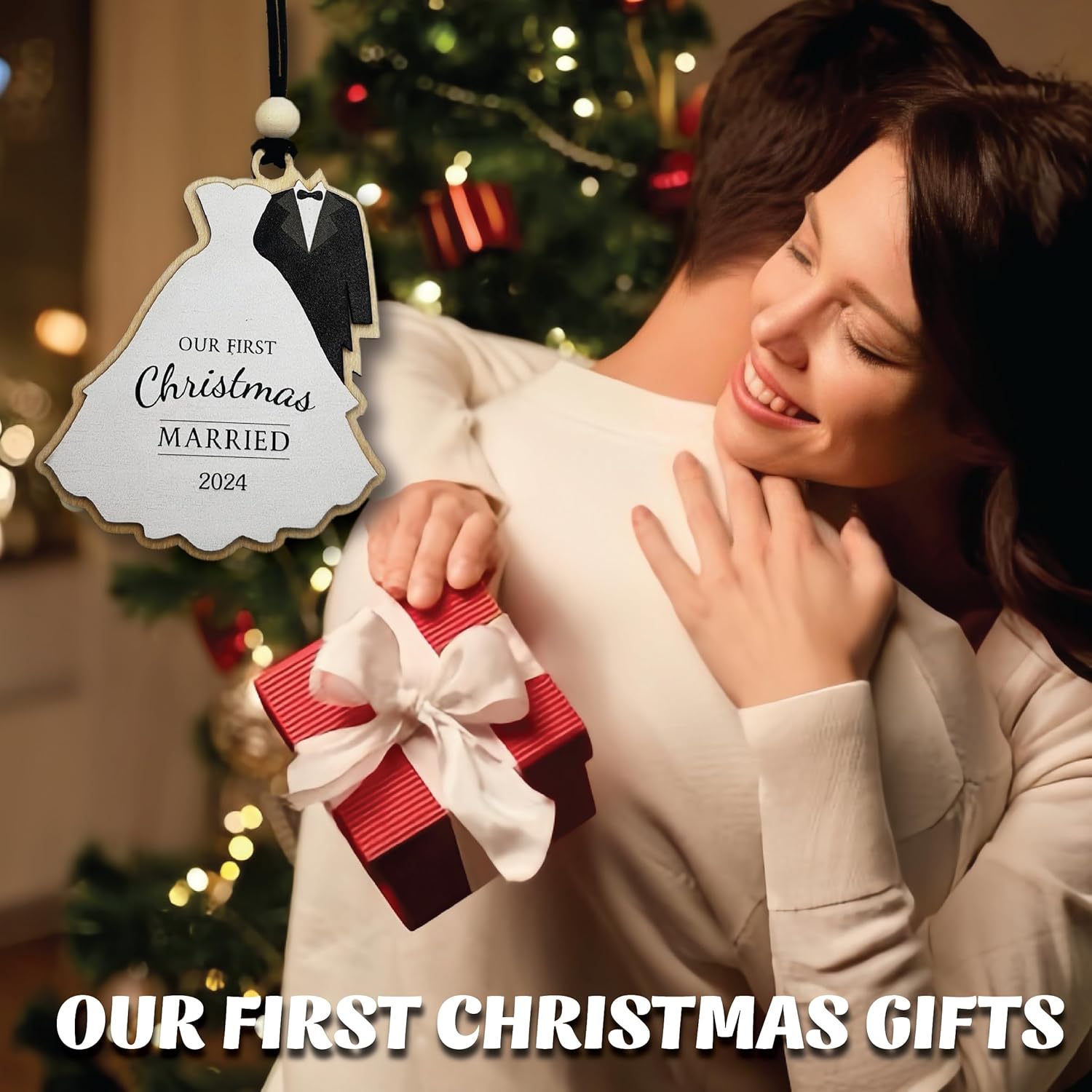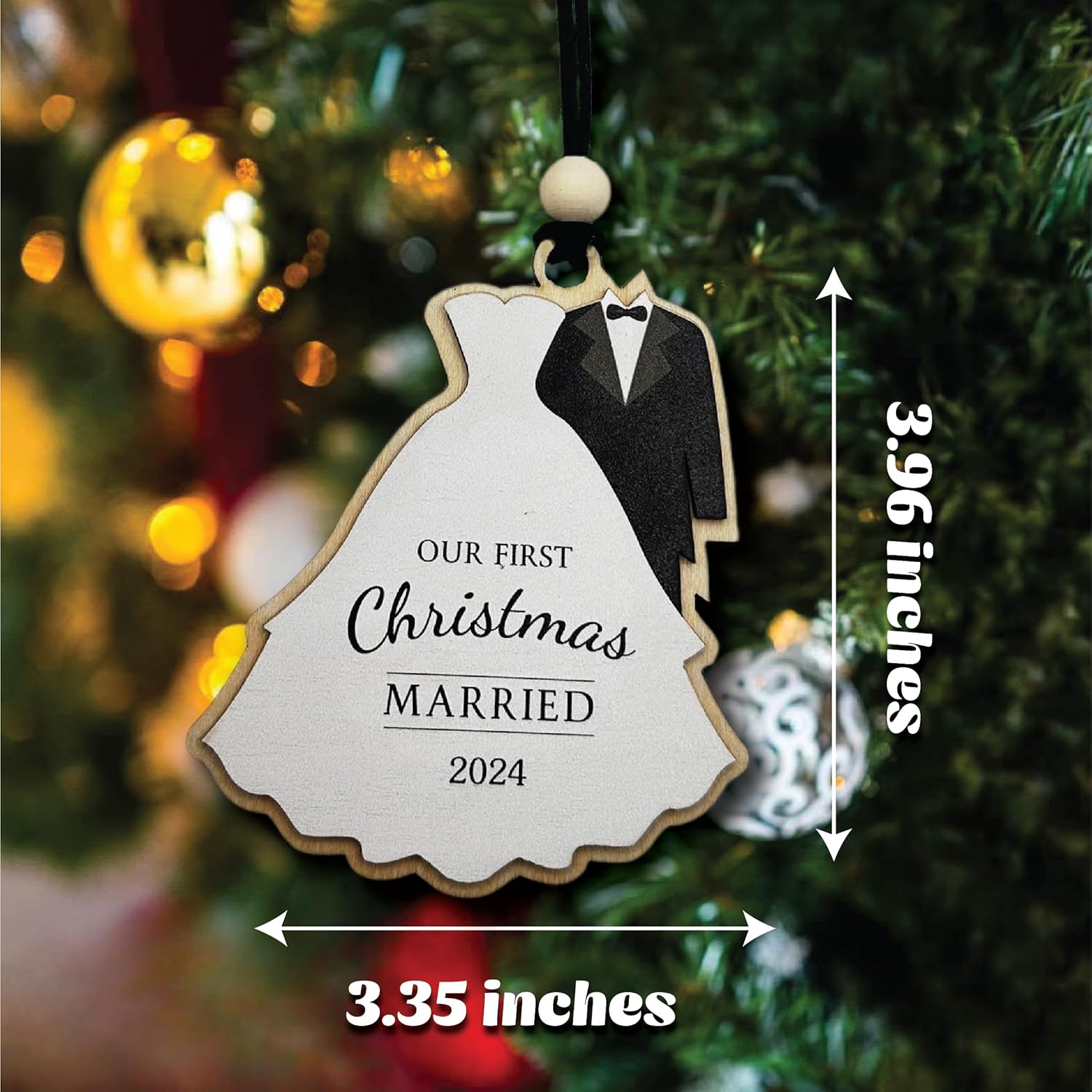 First Christmas Married Ornament 2024 Wedding Gifts for Couple, Mr and Mrs Gifts, Wedding Shower Gifts, Wedding Ornament, 2-Layer Wood Ornament