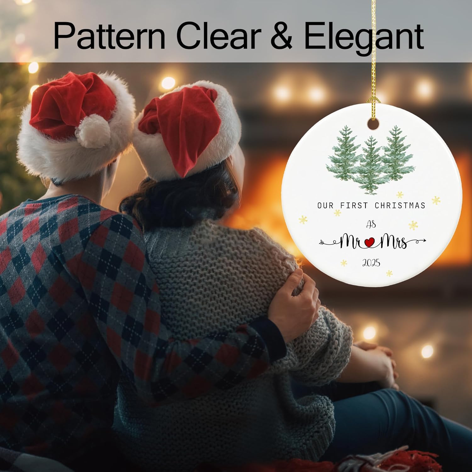 Hanging Ornament, First Christmas Married 2024, 2.9'' Ceramic Newlywed Keepsake, Mr & Mrs Christmas Ornament, Wedding, Christmas Decoration