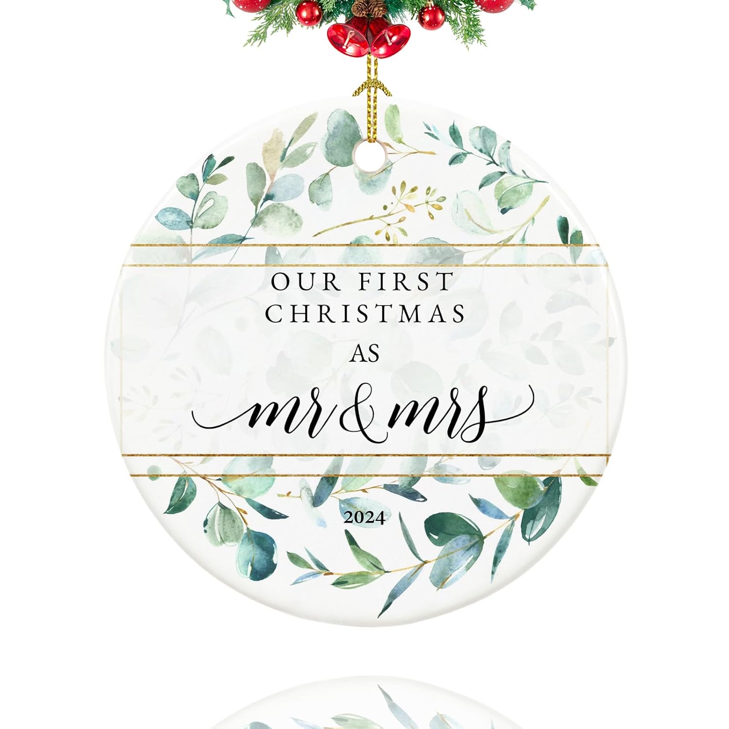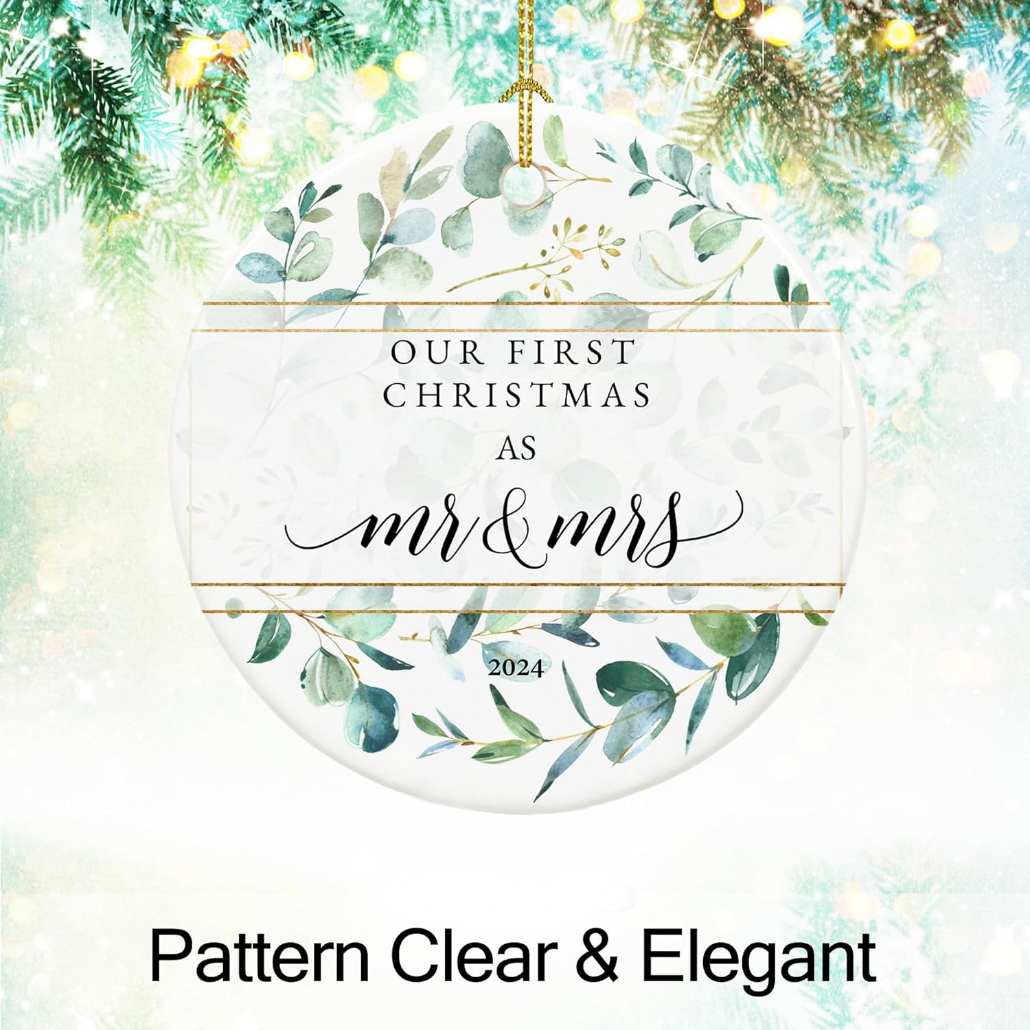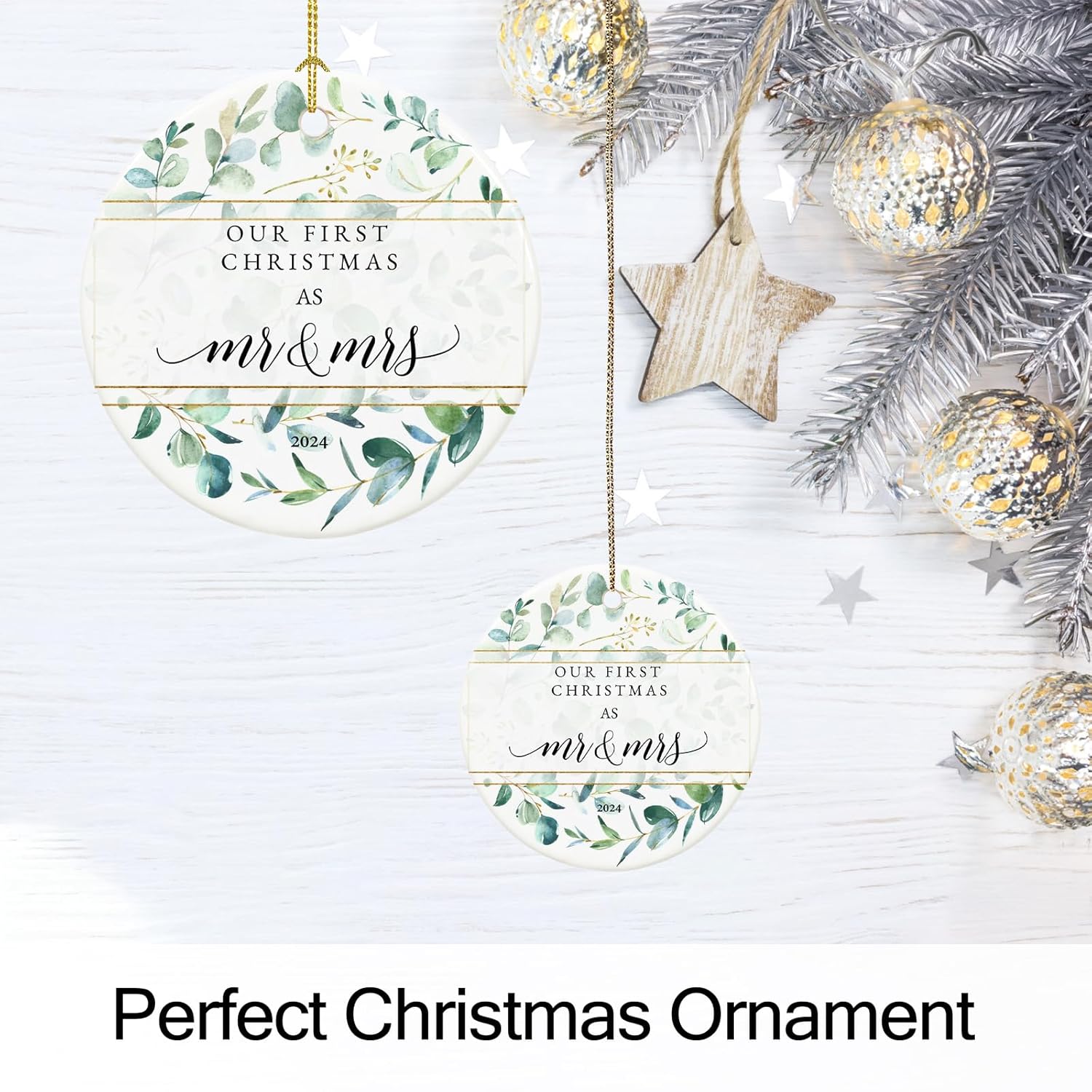 First Christmas Married Ornament 2024, Our First Christmas as Mr and Mrs Gifts, Just Married Gifts, 2.9" Ceramic Newlyweds Christmas Ornament 2024