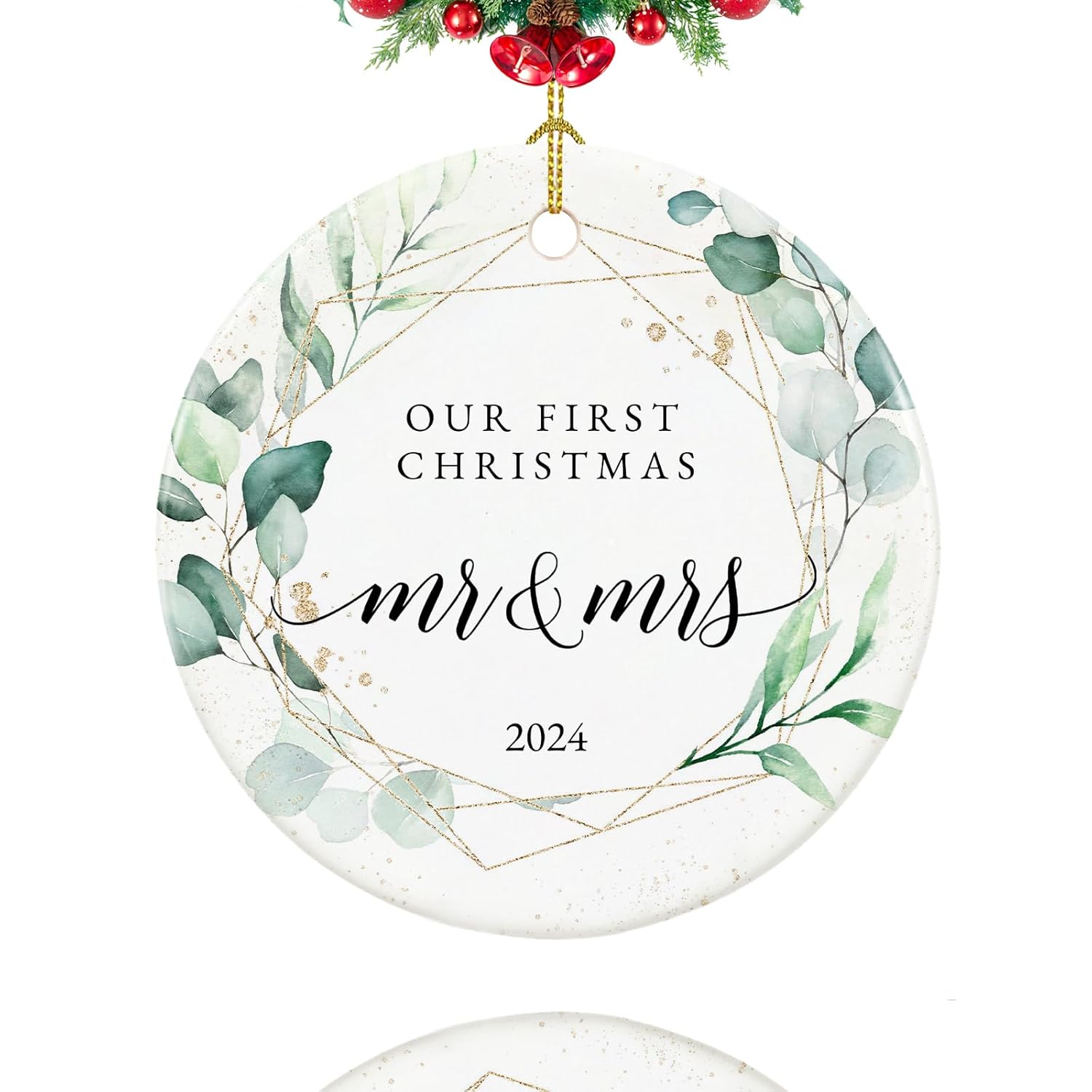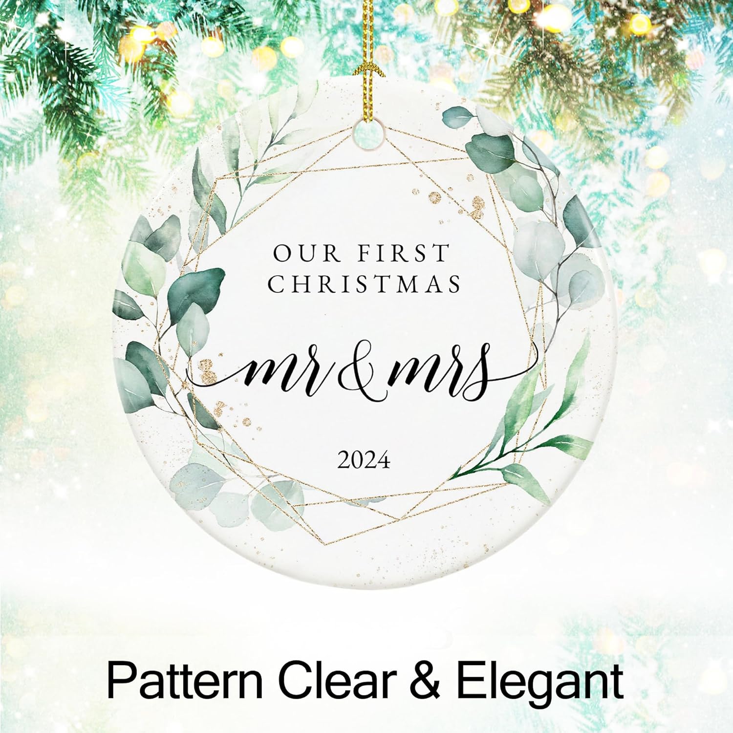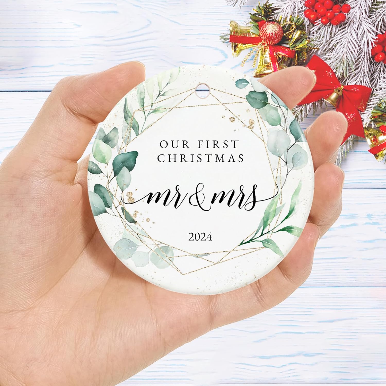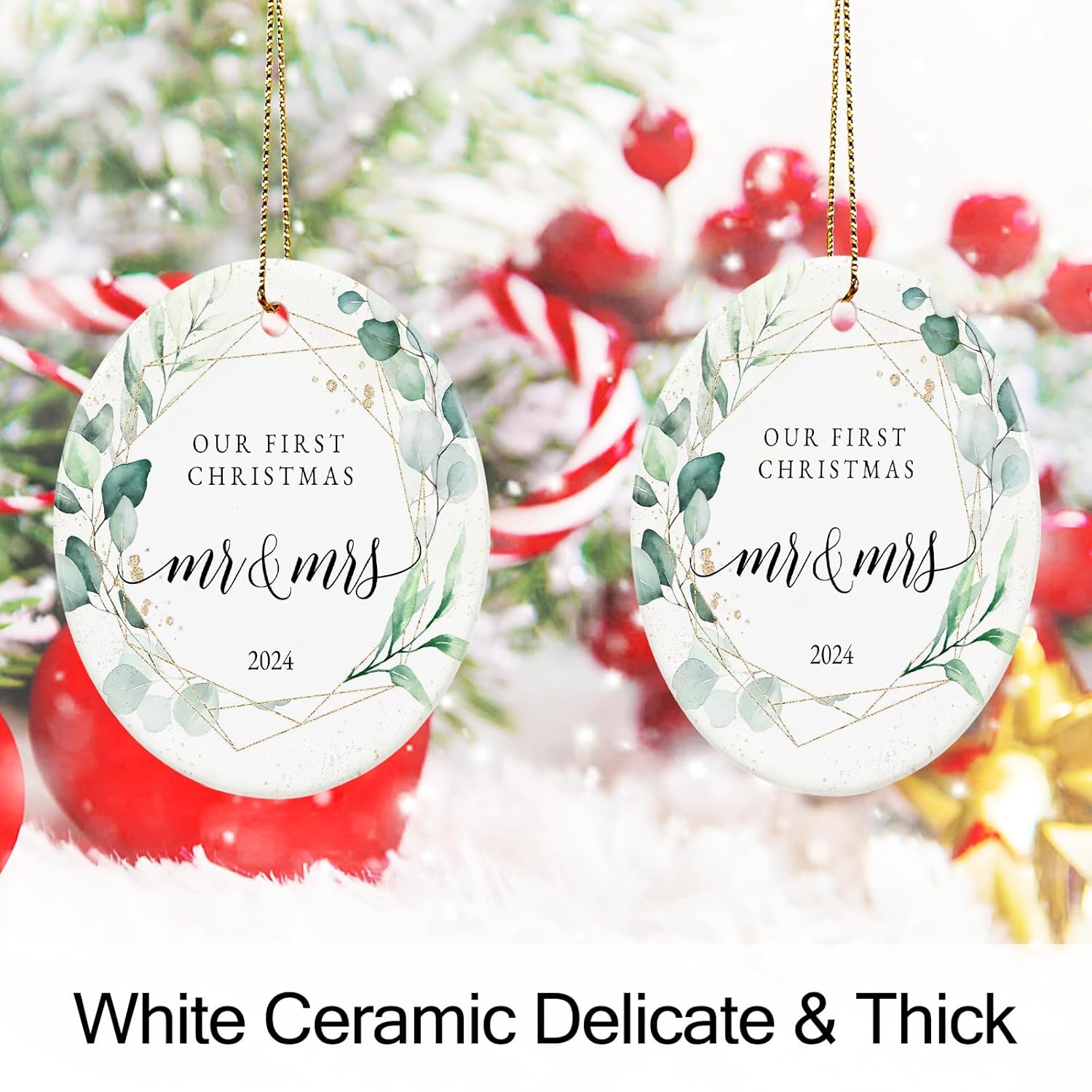 First Christmas Married Ornament 2024, Our First Christmas as Mr and Mrs, Just Married Gifts, 2.9" Ceramic Newlyweds Christmas Ornament 2024