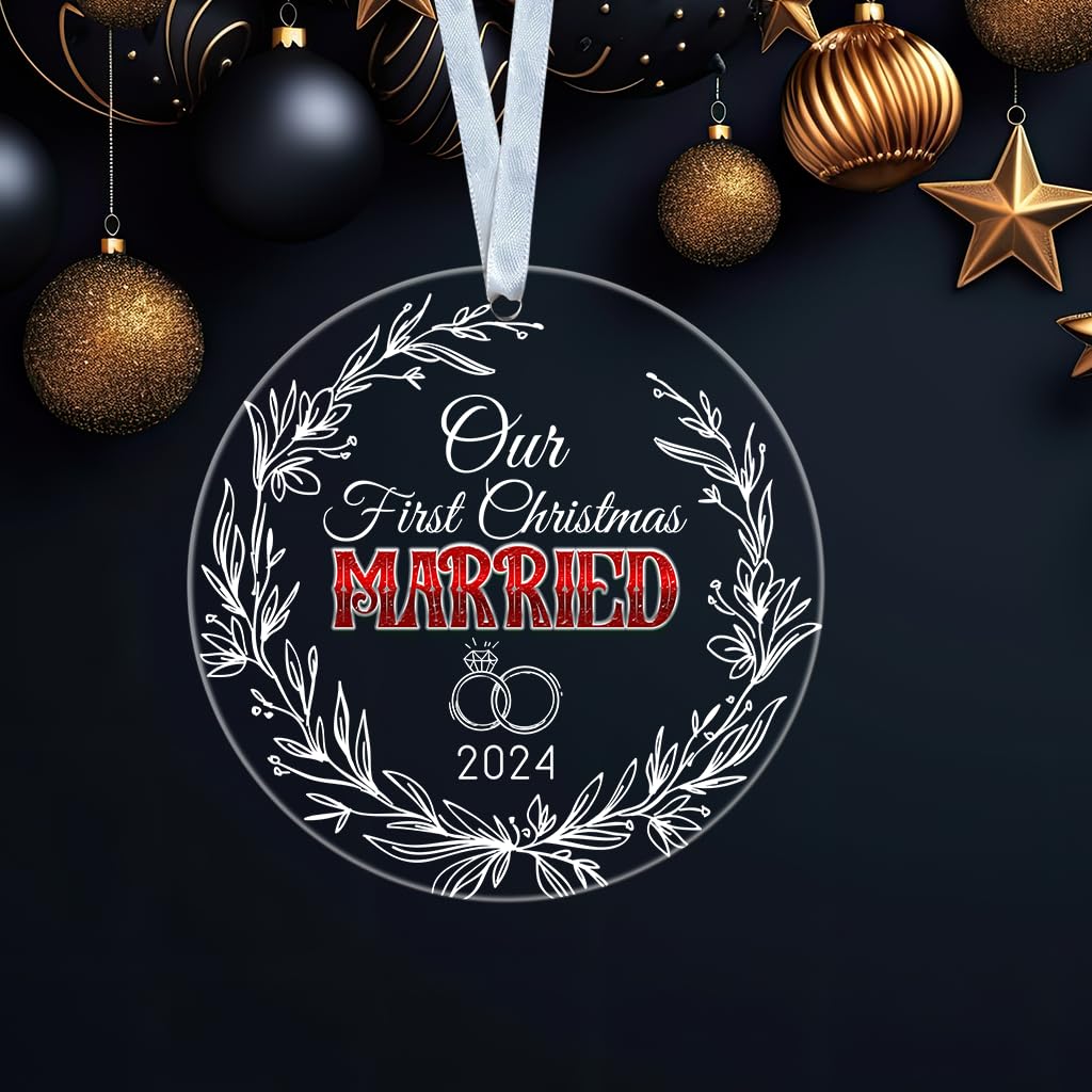 Frist Christmas Married 2024 Ornament - 1St Married Anniversary Ornament - 1 Years Hanging Acrylic Ornament - 1St Wedding Keepsake