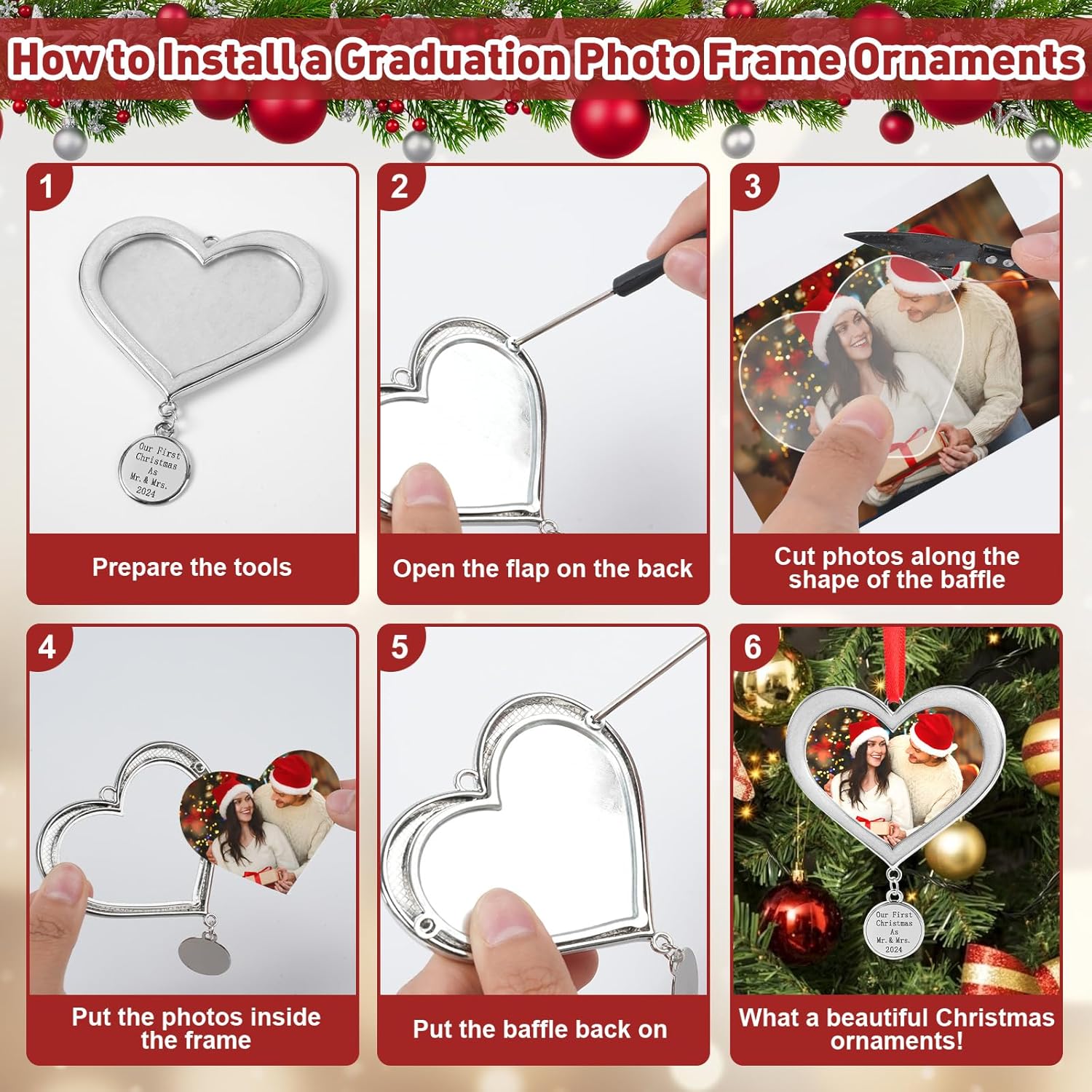 Metal Our First Christmas as Mr. and Mrs. 2024 Picture Frame Ornaments for Tree Stocking Decorations, Personalized Xmas Married Photo Frame Ornament Keepsake, Christmas Wife Husband Gifts Ideas