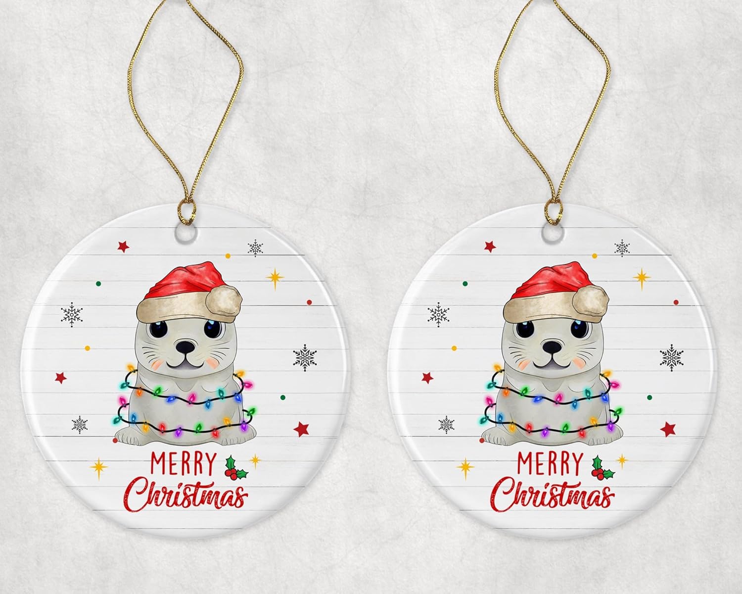 Merry Christmas Seal Ornament, 2024 Christmas Ornament, Seal Christmas Light Ornament, Kids Christmas Ornament, Animal Christmas Ornament Printed on One Side