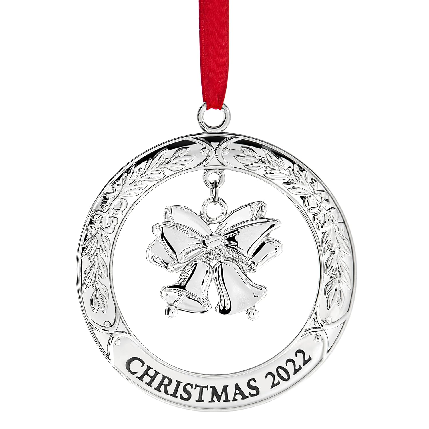 Klikel Christmas Ornament 2022 - Shiny Silver Christmas Ornament 2022 Wreath with Bell - Dated 2022 Christmas Ornament - 2022 Ornament for Christmas Tree - Beautiful Bell Ornament for Holidays 2022