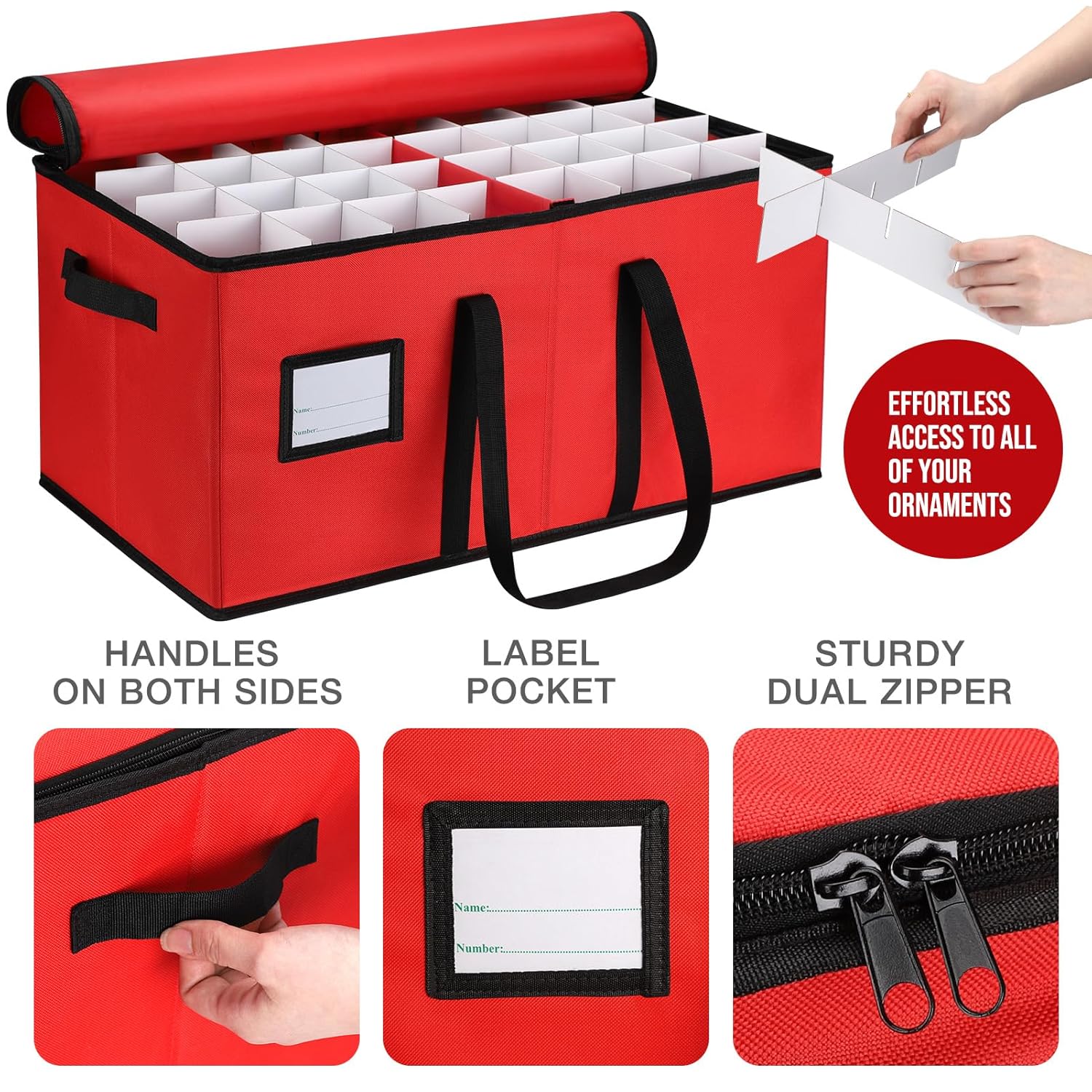 Hommtina Ornament Storage Plastic Ornament Storage Box,Christmas Ornament Storage Xmas Decorations Accessories, Ornament Organizer Storage Box (Black edge)