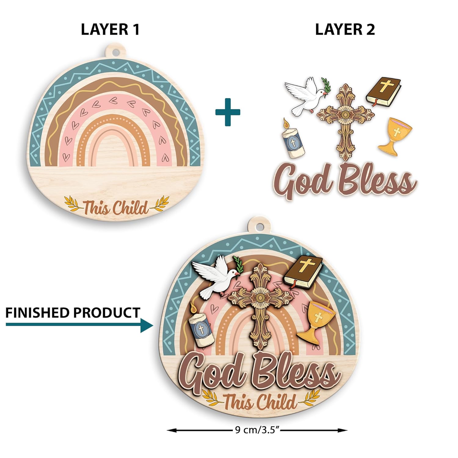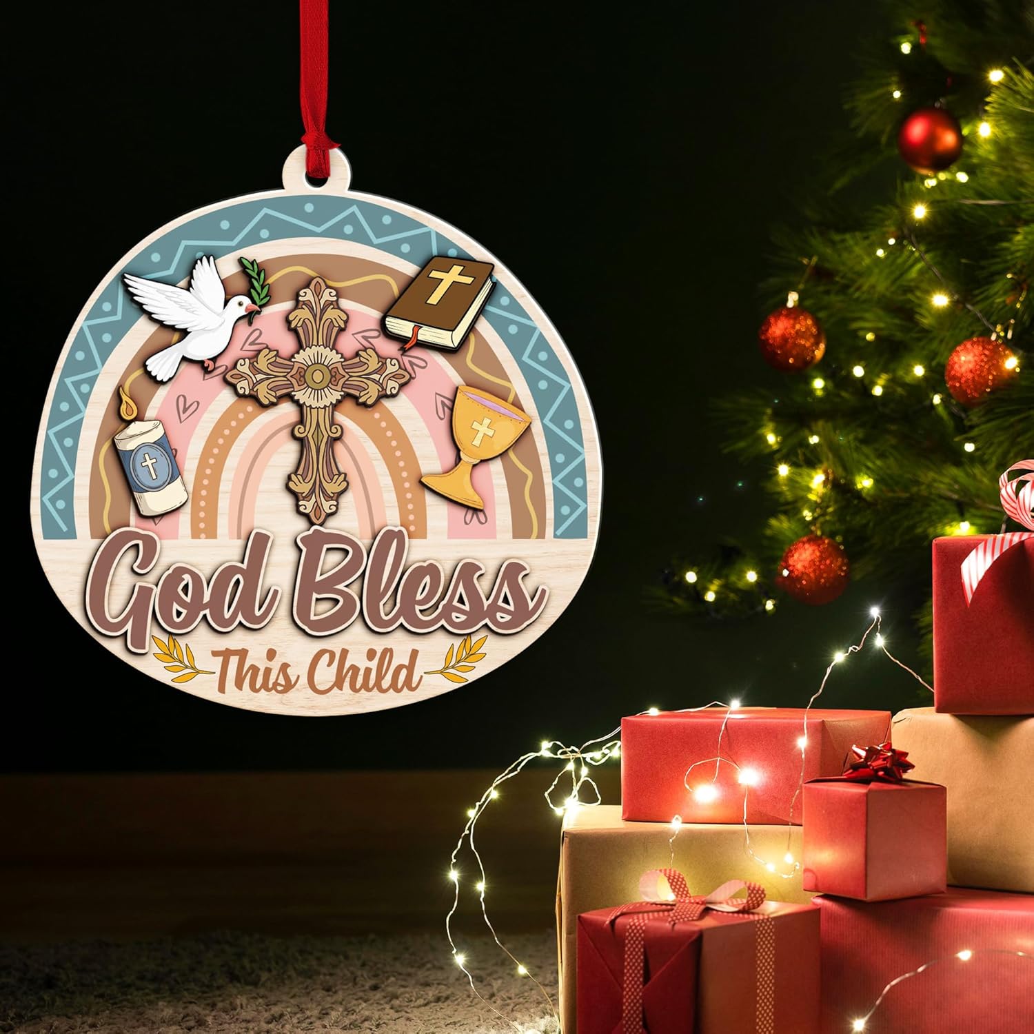 God Bless Christening Ornament, First Communion Ornament, First Communion Ornament Gift for Boys and Girls, Godchild Gift, God Bless Ornament