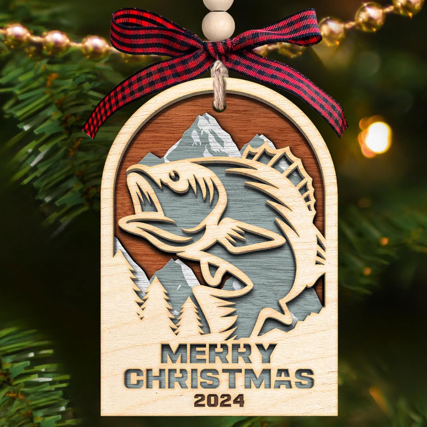 Fishing Ornament for Christmas Tree - Fish Christmas Ornaments, Fishing Ornaments 2024 - Wood Xmas Tree Ornament