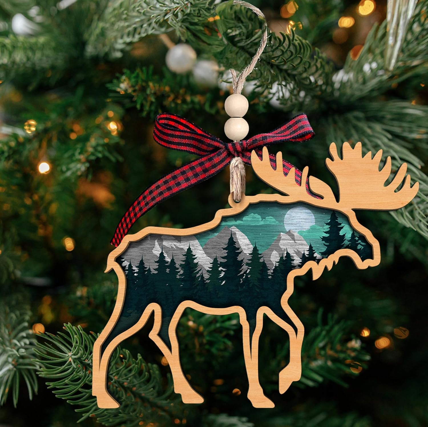 Moose Ornament - Moose Ornaments for Christmas Tree - Gifts for Christmas, Lovers Gifts - Wood Ornament